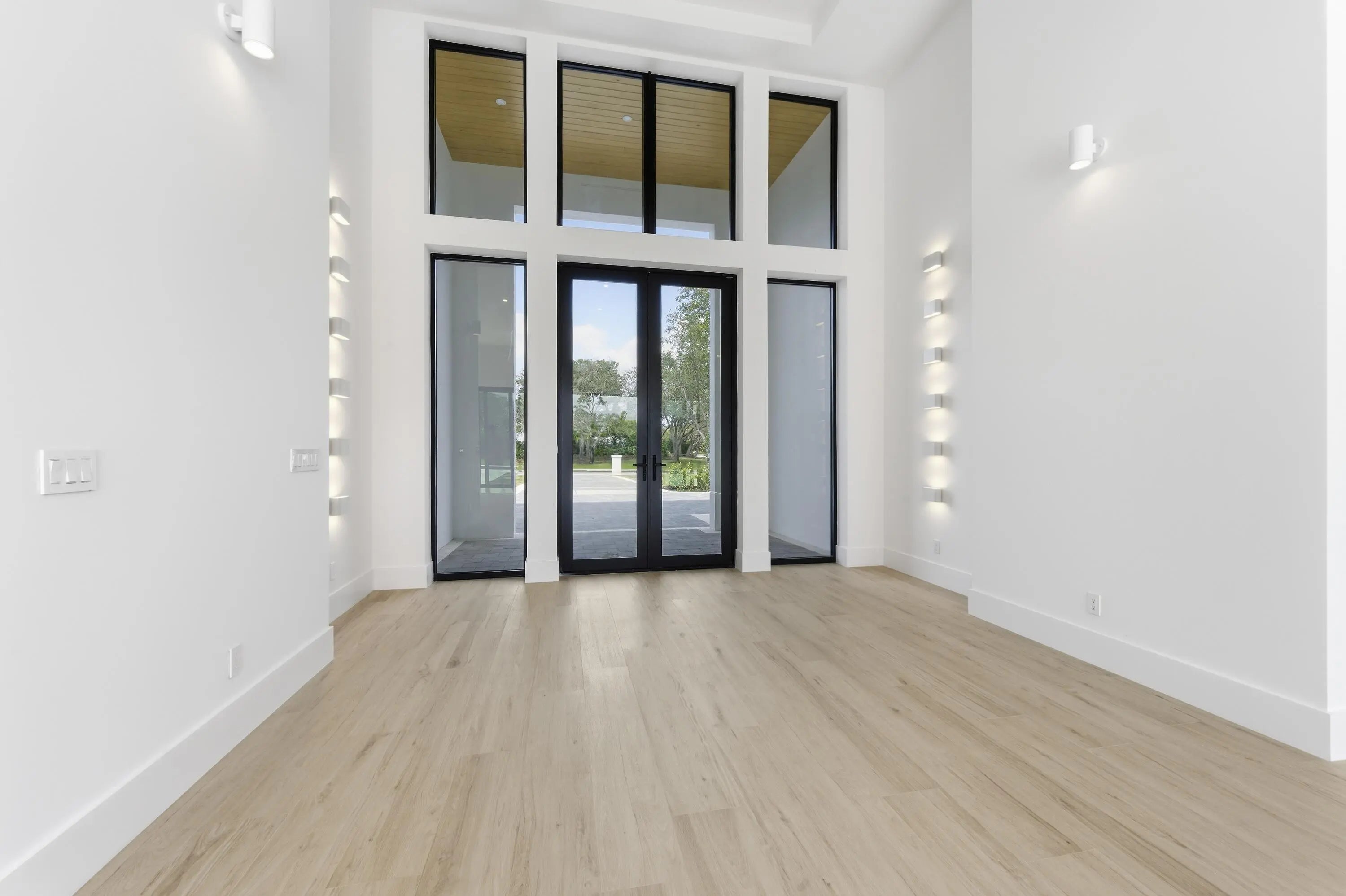 An exceptional new construction estate set on a prime lot within the prestigious, gated community of Steeplechase. This single-story residence offers 5 bedrooms, 5 full baths, two half baths. 4,993 sq ft of refined living space (6,930 total). A grand 17-foot foyer opens to a stunning great room with soaring 14-foot ceilings and walls of glass that seamlessly connect to a private courtyard oasis. Outdoor living is elevated with oversized porcelain pavers, artificial turf, and a 16 x 50 saltwater pool featuring sun shelves, deck jets, bubblers, spa, and an expansive covered patio with a 20-foot summer kitchen. The chef's kitchen showcases a 15-foot mitered quartz island, custom cabinetry, full backsplash, pantry, and a complete Sub-Zero/Wolf/Cove appliance suite.