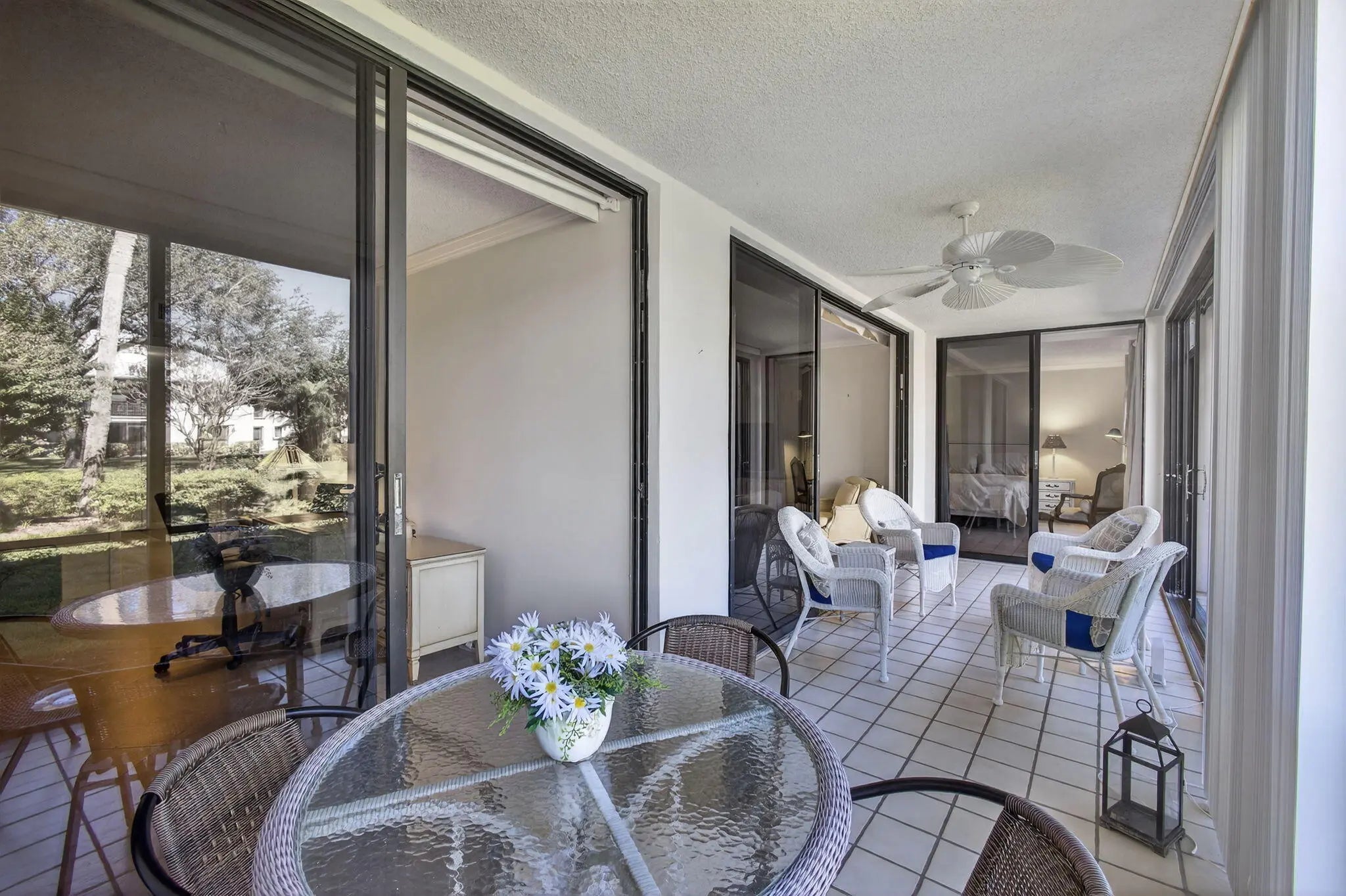 Spacious 1st floor 2 bedroom, 2 bath condo located within the gated golf community of Turtle Creek. Relax on the huge glass/screened lanai & enjoy the lovely garden views & tranquil setting. Features include: 1,400 sf of living area; updated kitchen w/white cabinetry & granite countertops; 2 full baths; tile flooring throughout; great closets throughout.. Primary bedroom offers garden views, access to lanai, walk-in closet & ensuite bath w/double vanity & tiled tub/shower. Guest bedroom has double closet with access to lania + garden views . Carport + Open parking. Amenities include community pool, sauna & clubhouse, BBQ grill & bocce ball court. Do not miss this lovely Turtle Creek condo close to shops, restaurants & the beach.