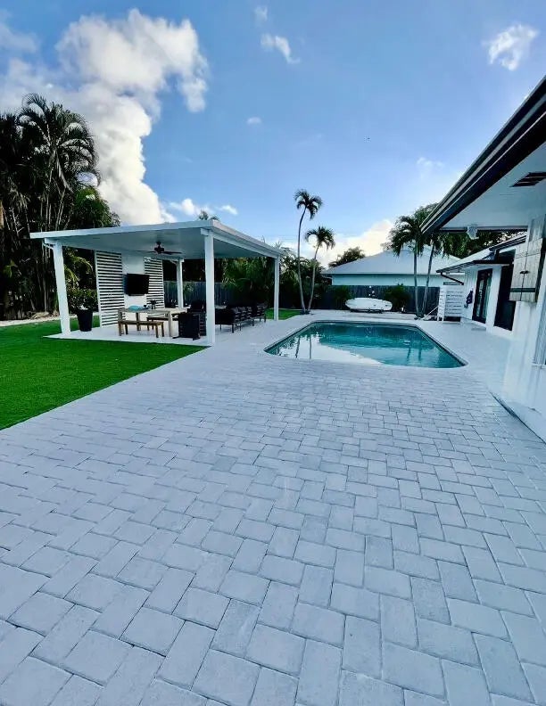 Exceptional home in the highly sought-after Tequesta area. Located on quiet cul-de-sac, this property offers a variety of premium features: 3-year-old metal roof, new driveway with ample parking for RV, boat, or multiple vehicles, and a low-maintenance backyard featuring artificial turf, 24' X 18' hurricane rated aluminum Pergola, & outdoor TV. The 31' x 16' swimming pool & putting green complete your outdoor entertainment area. Impact glass front door & all sliding glass doors with accordion shutters protecting the remainder of the home. Main ensuite bath w/soaking tub, walk-in shower & double vanities., full powder room with shower & 2nd floor tub/shower bath Beautiful family room & game room Amazing updated white kitchen w/granite waterfall countertops, & new appliances!