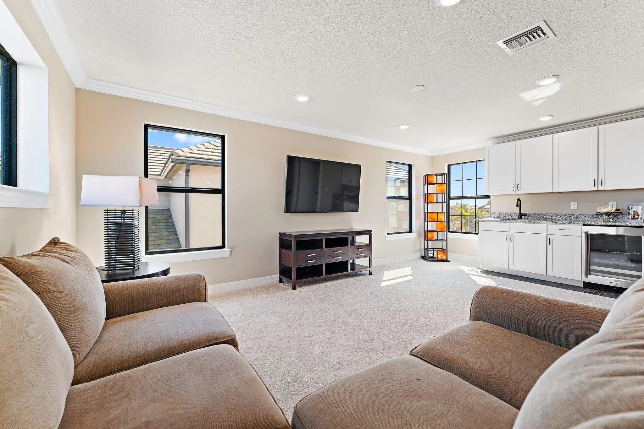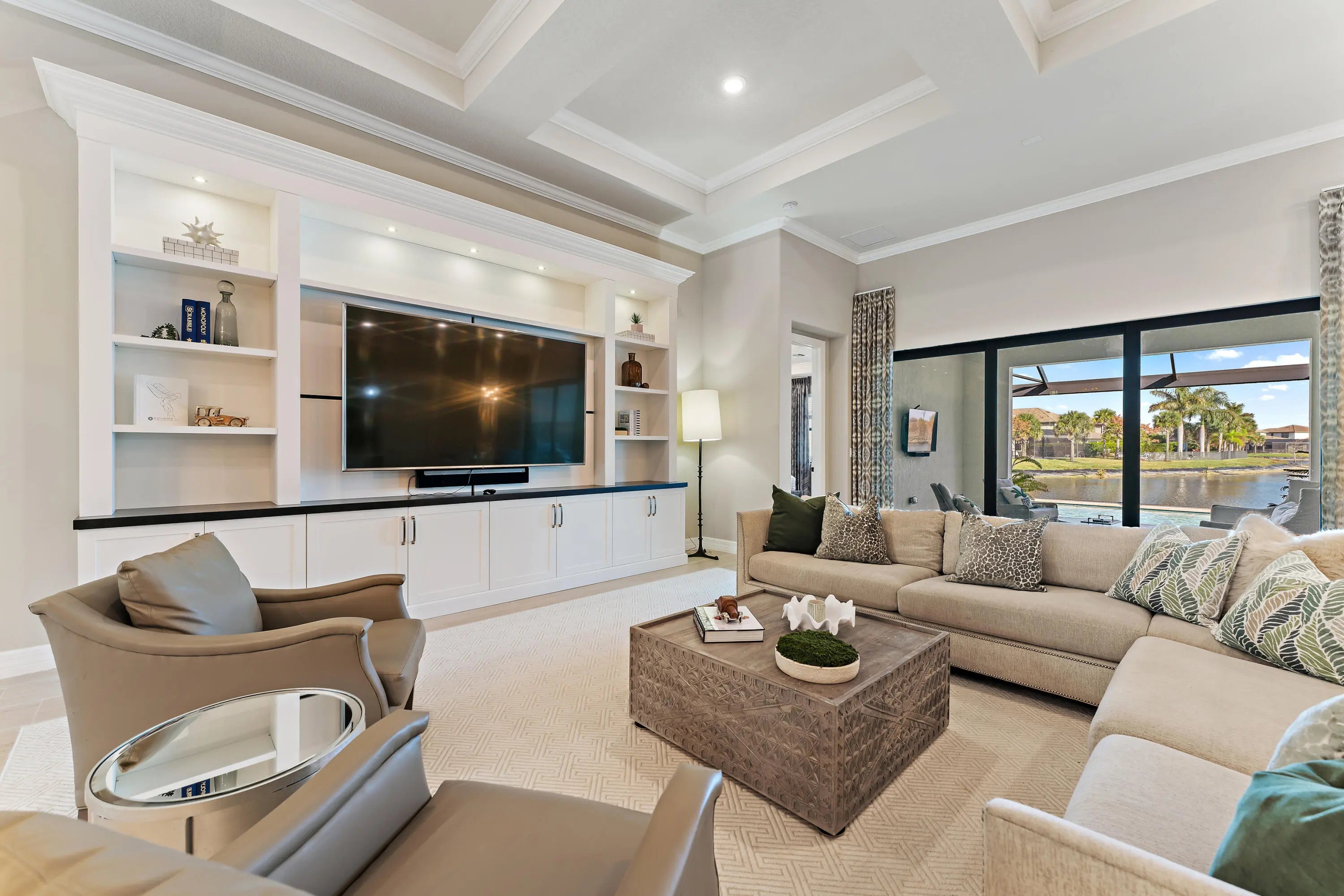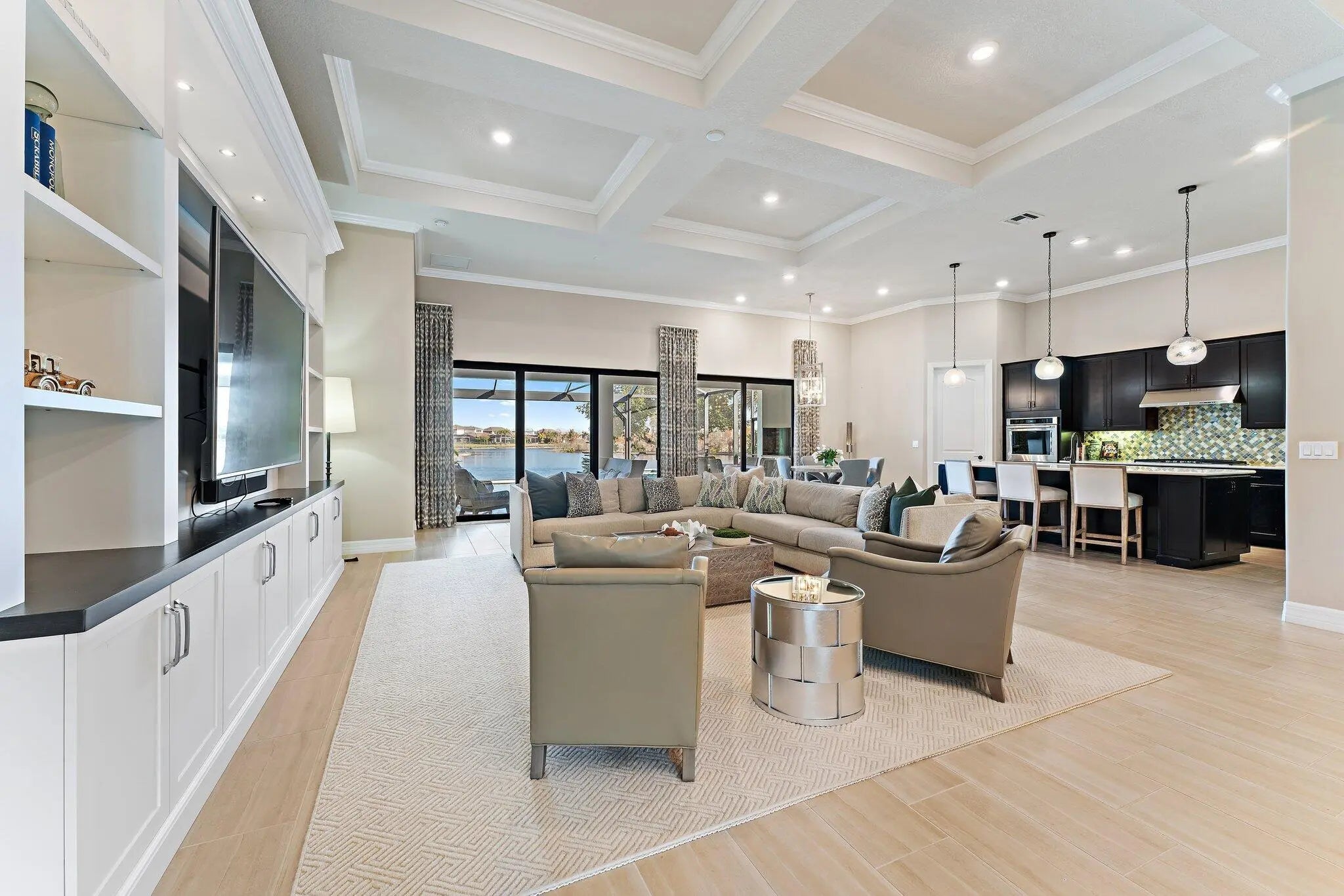 Enjoy stunning panoramic water views from one of the most coveted lots within the prestigious gated community of Sonoma Isles in Jupiter. Perfectly positioned to maximize its breathtaking waterfront setting, this exceptional residence offers expansive living areas, refined designer finishes, and seamless indoor-outdoor flow--creating the ultimate backdrop for elevated everyday living and unforgettable sunsets. Thoughtfully designed for both privacy and functionality, the home features four spacious bedrooms, each privately situated in its own corner of the home, an oversized loft, a dedicated den/office, and a generous three-car garage--providing ample space to live, work, and entertain in style.