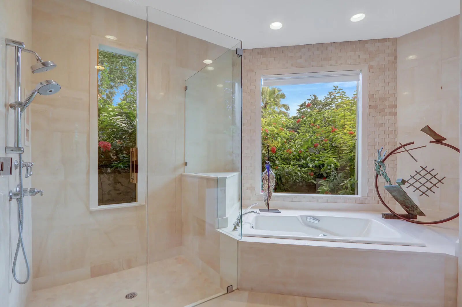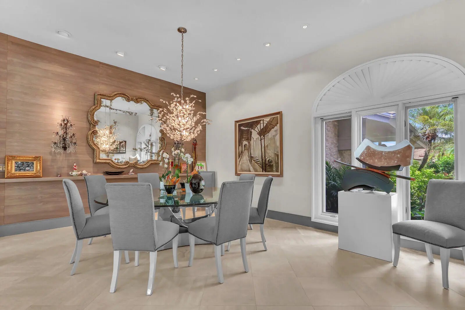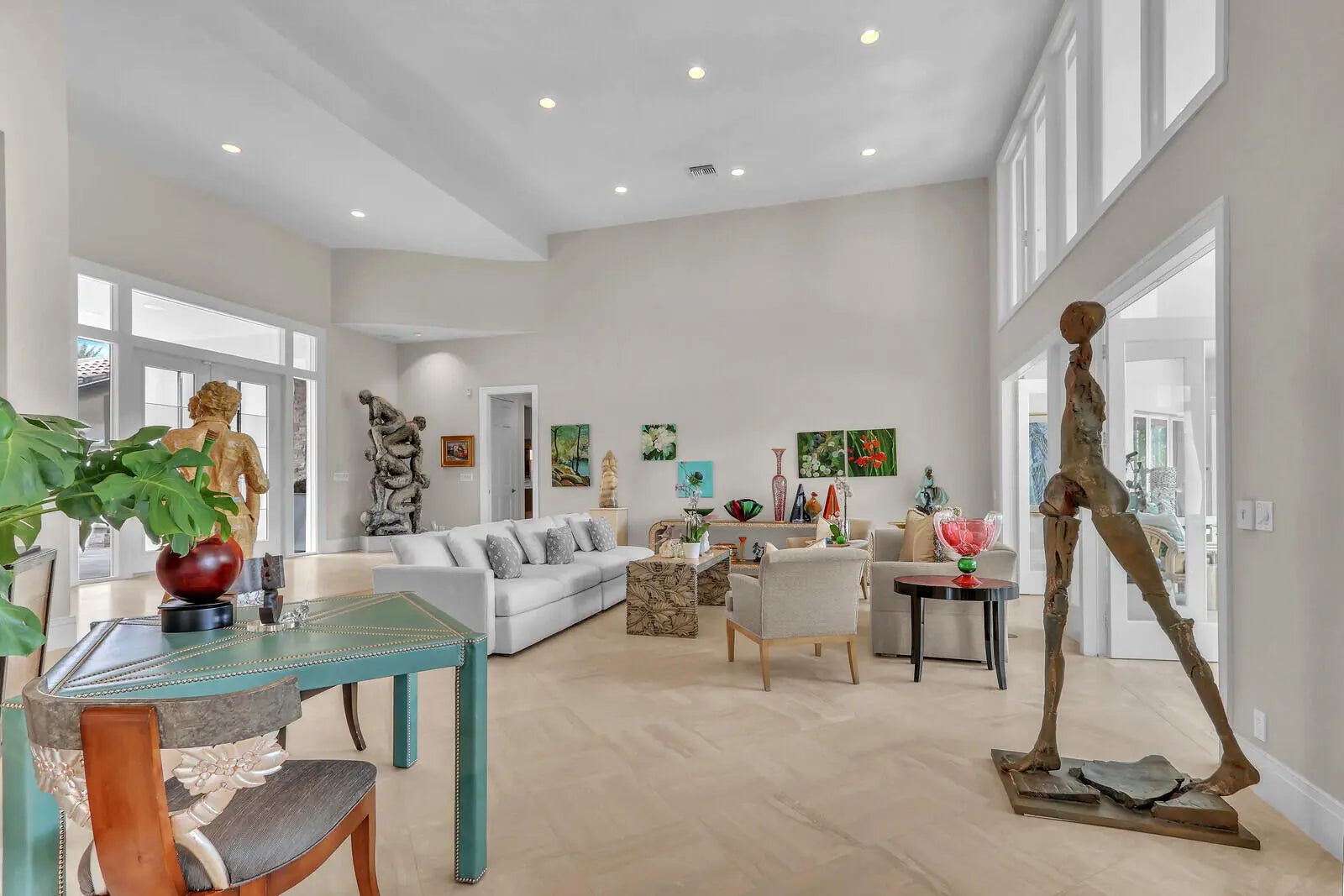 NEARLY ONE ACRE LOT! Breathtaking lakefront beauty is showcased in this spacious, light-filled single story residence in the prestigious community of Frenchman's Creek. Offering 4 bedrooms plus an office and 4.5 bathrooms - including a private and convenient 1/1 casita - this impressive estate spans over 6500 sq ft of living space on an expansive .87 acre lot. Designed for both grand entertaining and comfortable everyday living, the thoughtful crafted floor plan features generous living spaces enhanced by tasteful updates throughout. A contemporary kitchen and a striking double-sided fireplace elegantly adorns the main entertaining spaces. Soaring volume ceilings and an entire wall of windows frame exquisite lake views to create perfect Florida indoor/outdoor living. The grand prim