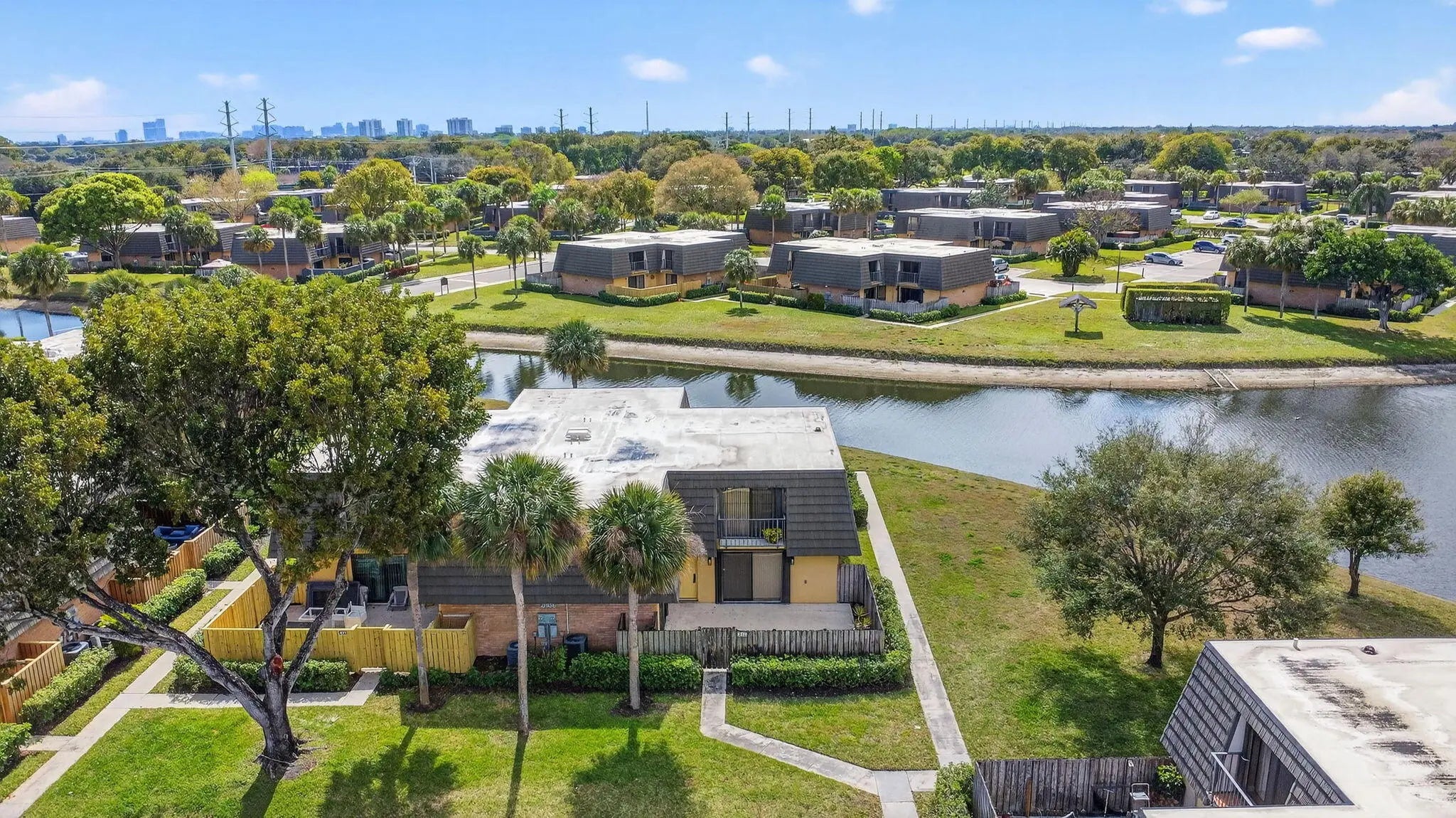 Welcome home to this bright and well maintained 2 bedroom, 2 1/2 bath townhouse featuring fresh interior paint, neutral tile throughout the main living area, and brand new carpet on the stairs and in both bedrooms. Enjoy peaceful water views from both upstairs bedrooms. Enjoy the convenience of accordion hurricane shutters, a fenced and private patio - perfect for relaxing or entertaining. Community amenities include pool, basketball, tennis courts and more. Conveniently located near shopping, dining, I-95 and downtown West Palm Beach and schools.