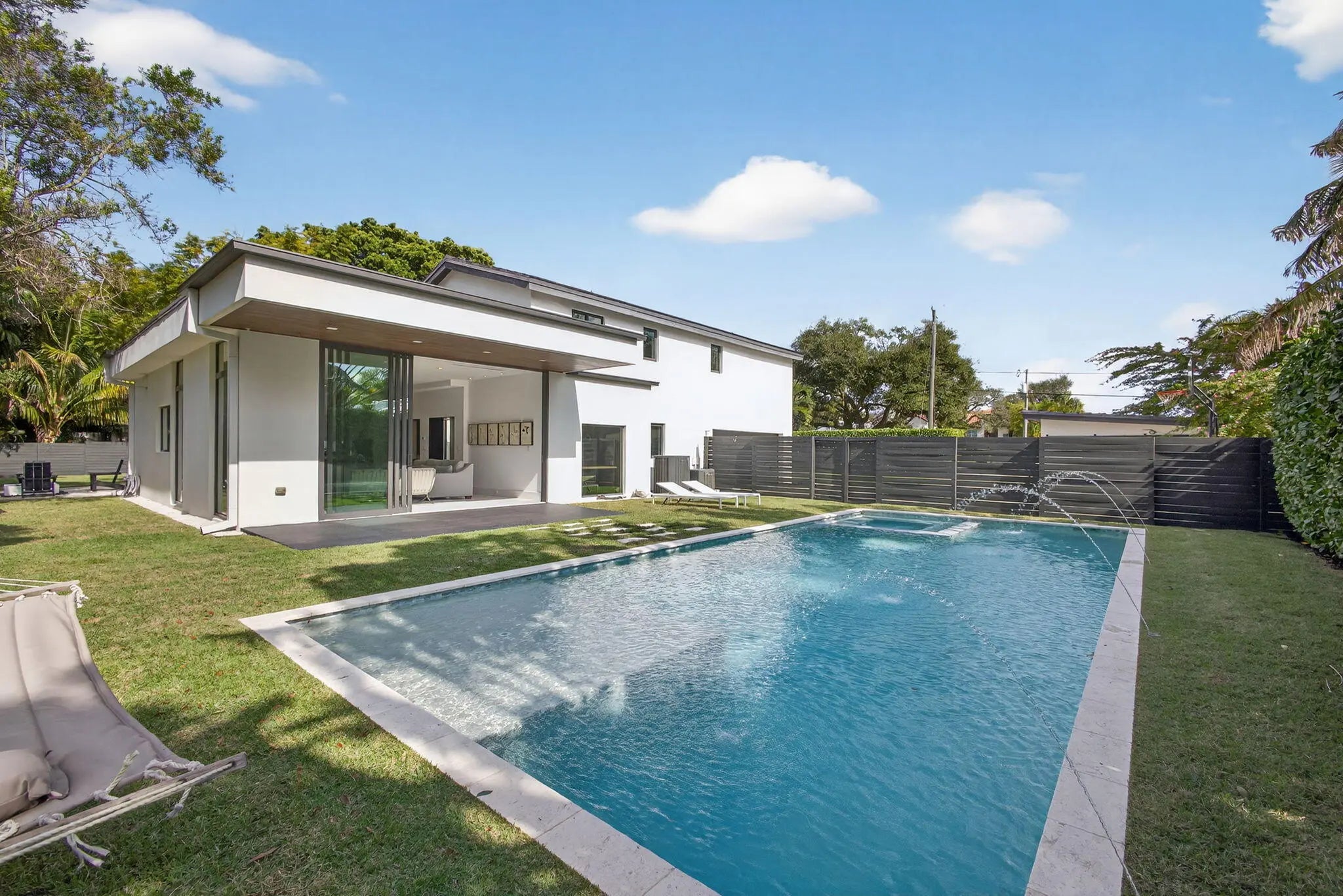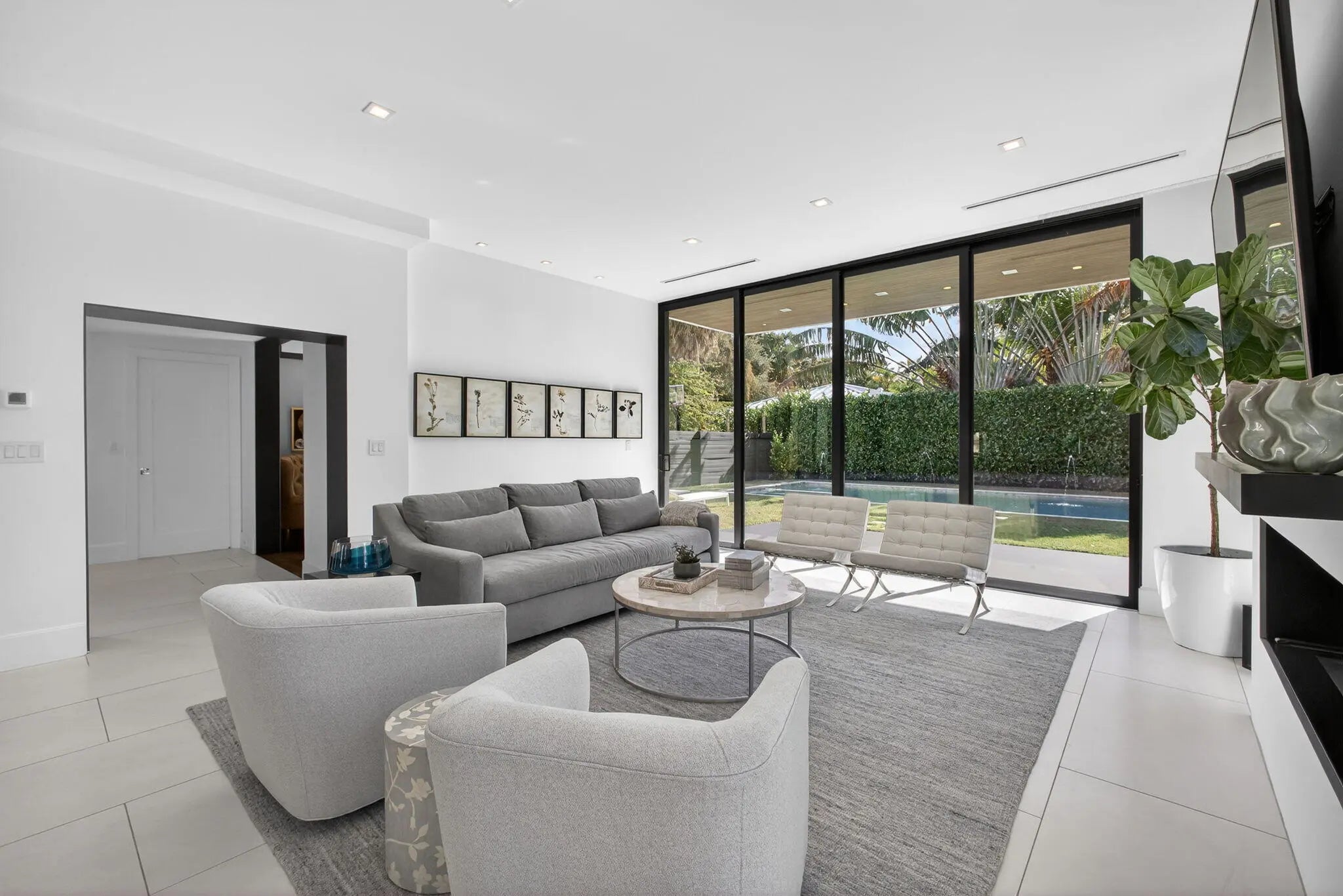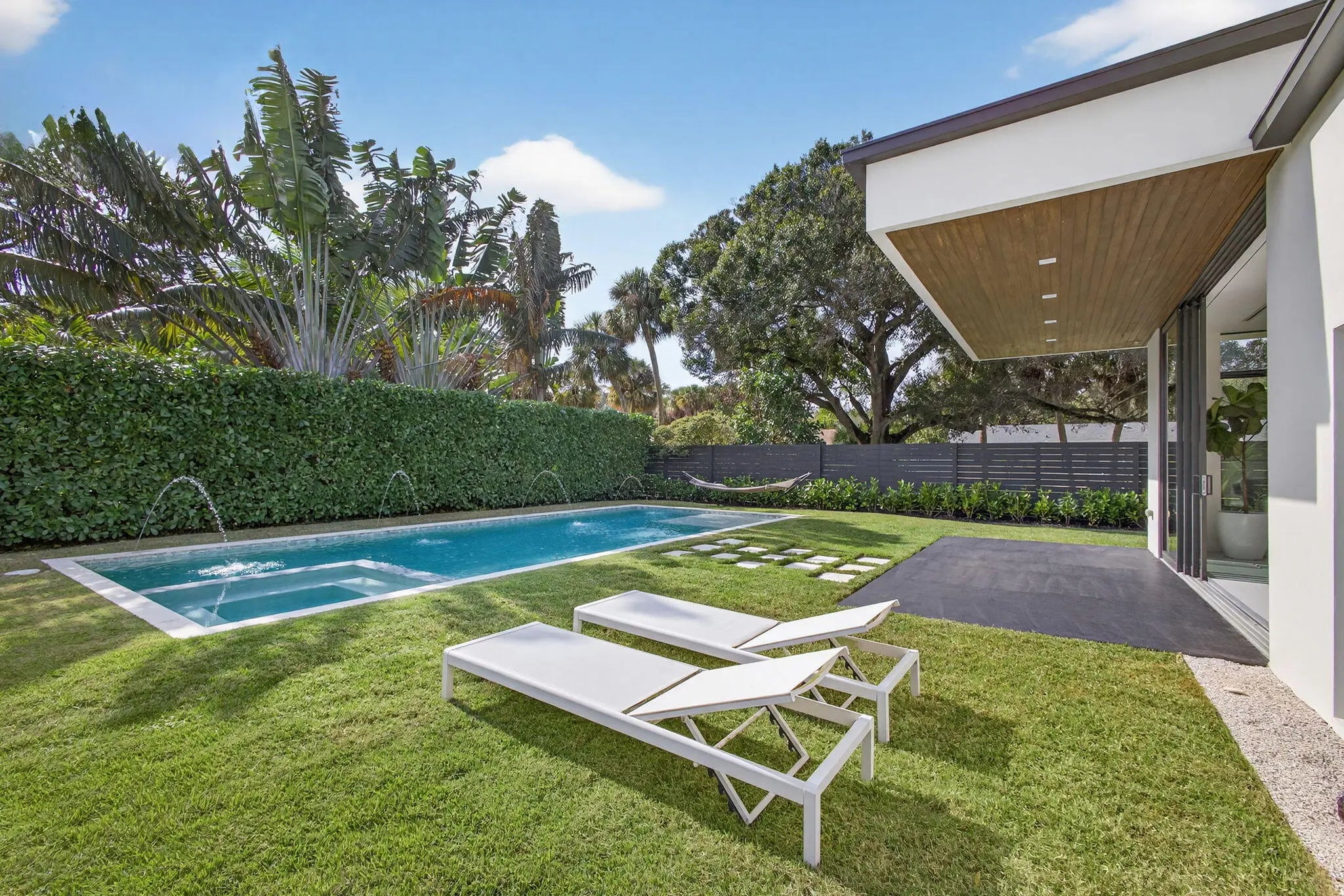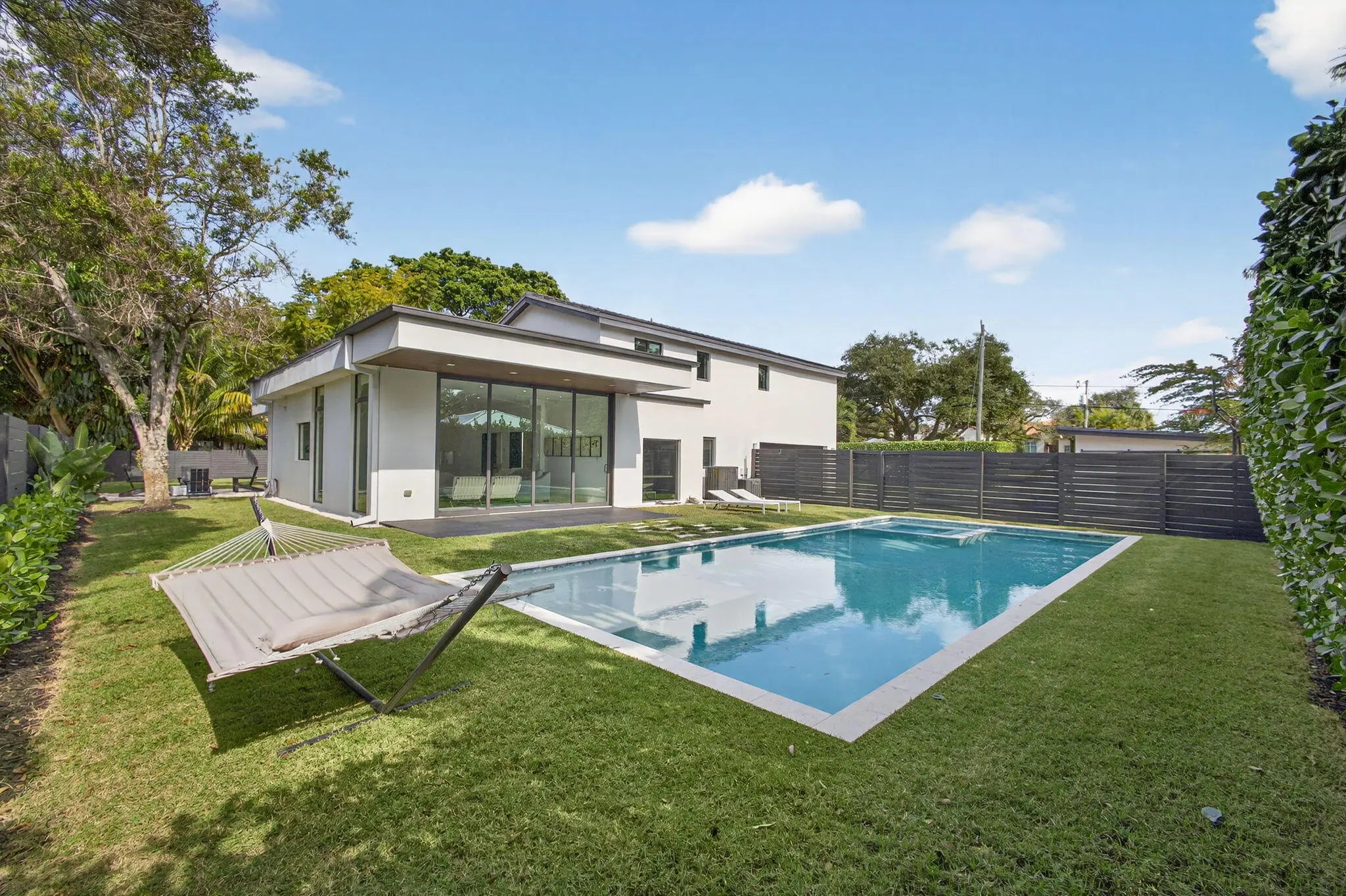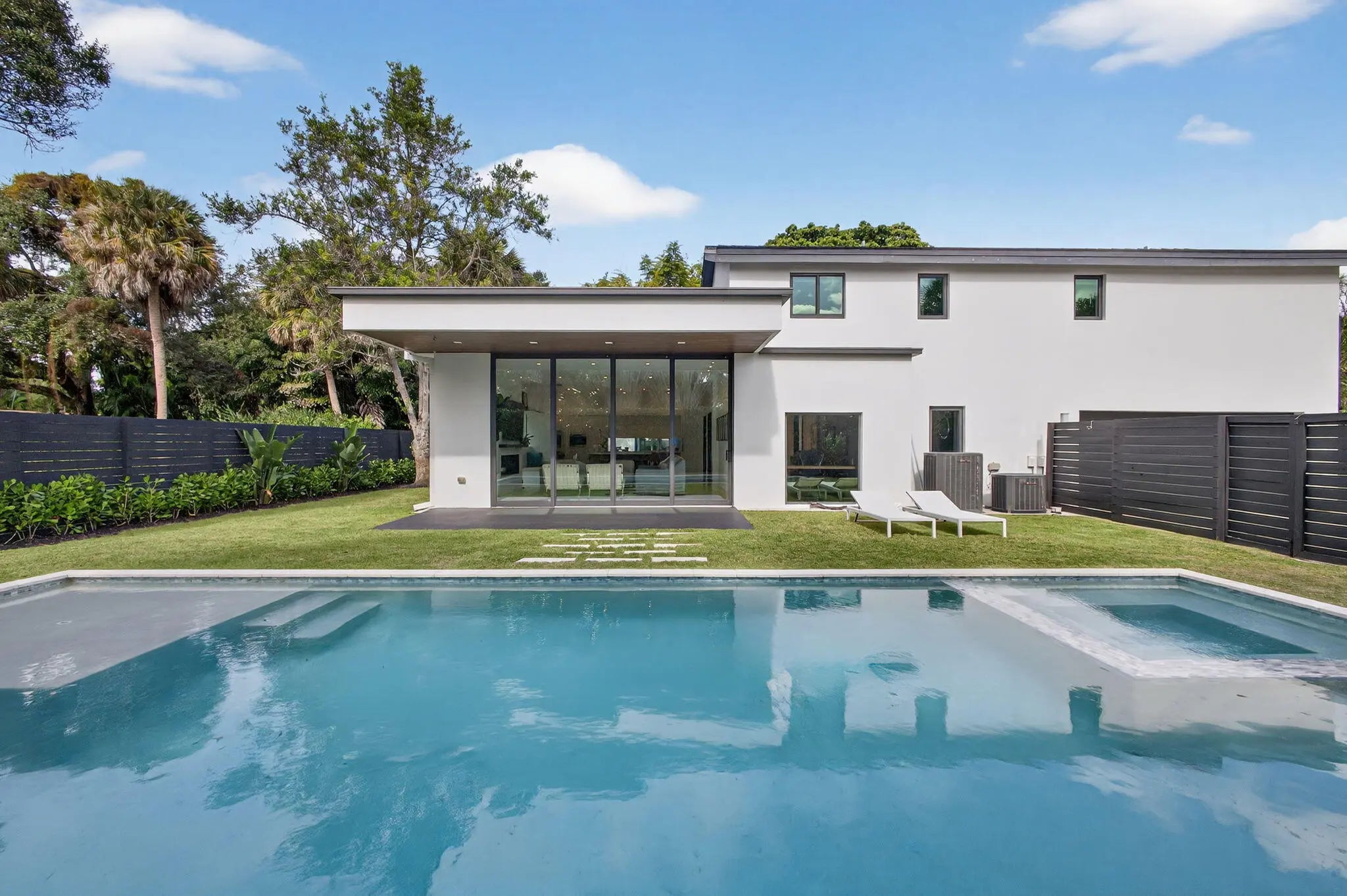 Welcome to Bella Luna--a striking contemporary estate that embodies architectural brilliance, privacy, and refined luxury in the heart of Palm Beach Gardens. Designed by the award-winning architectural and design team of Ballfort and Beres, this 4-bedroom, 3.5-bath residence with private office/den and upstairs entertainment loft is a true statement of modern sophistication.Completed in 2018 and positioned on a rare double lot on one of the most sought-after streets in the Northern Palm Beaches--with no HOA--this architectural masterpiece was crafted for the discerning buyer who values design integrity, elevated finishes, and seamless indoor-outdoor living.