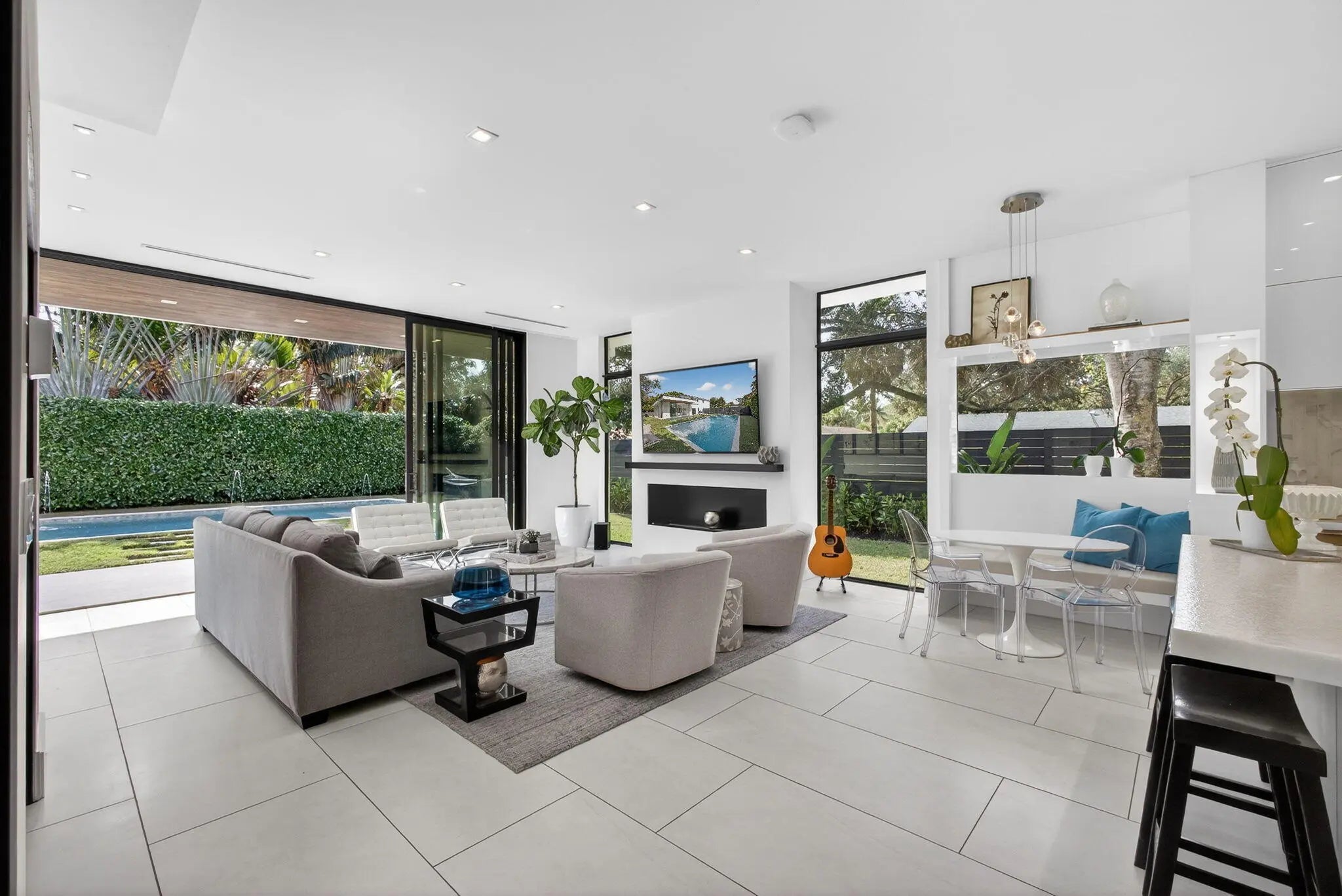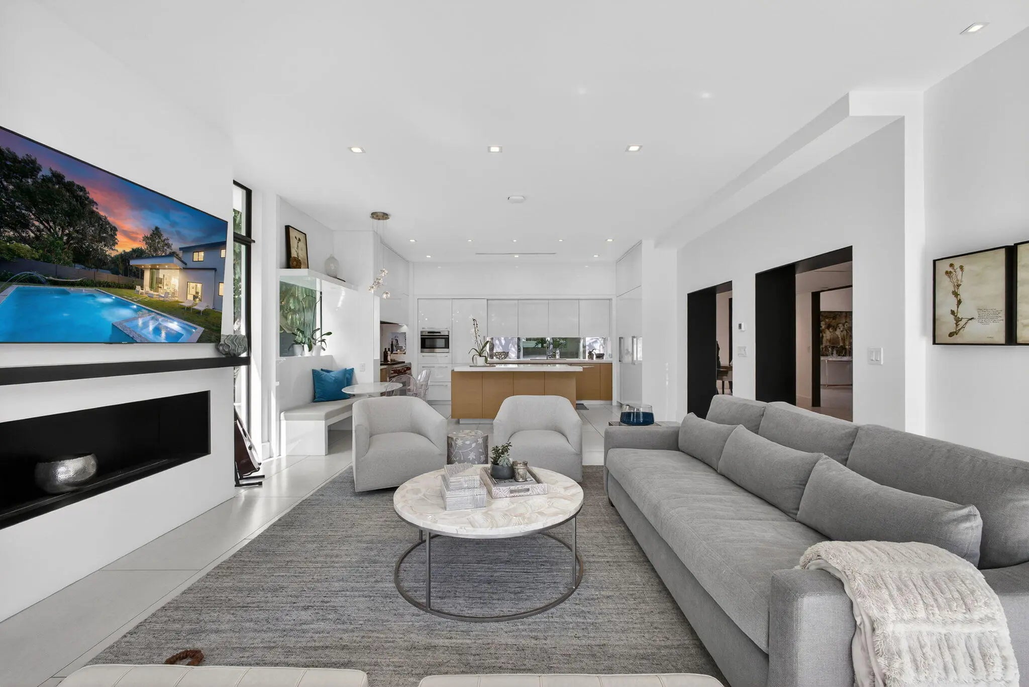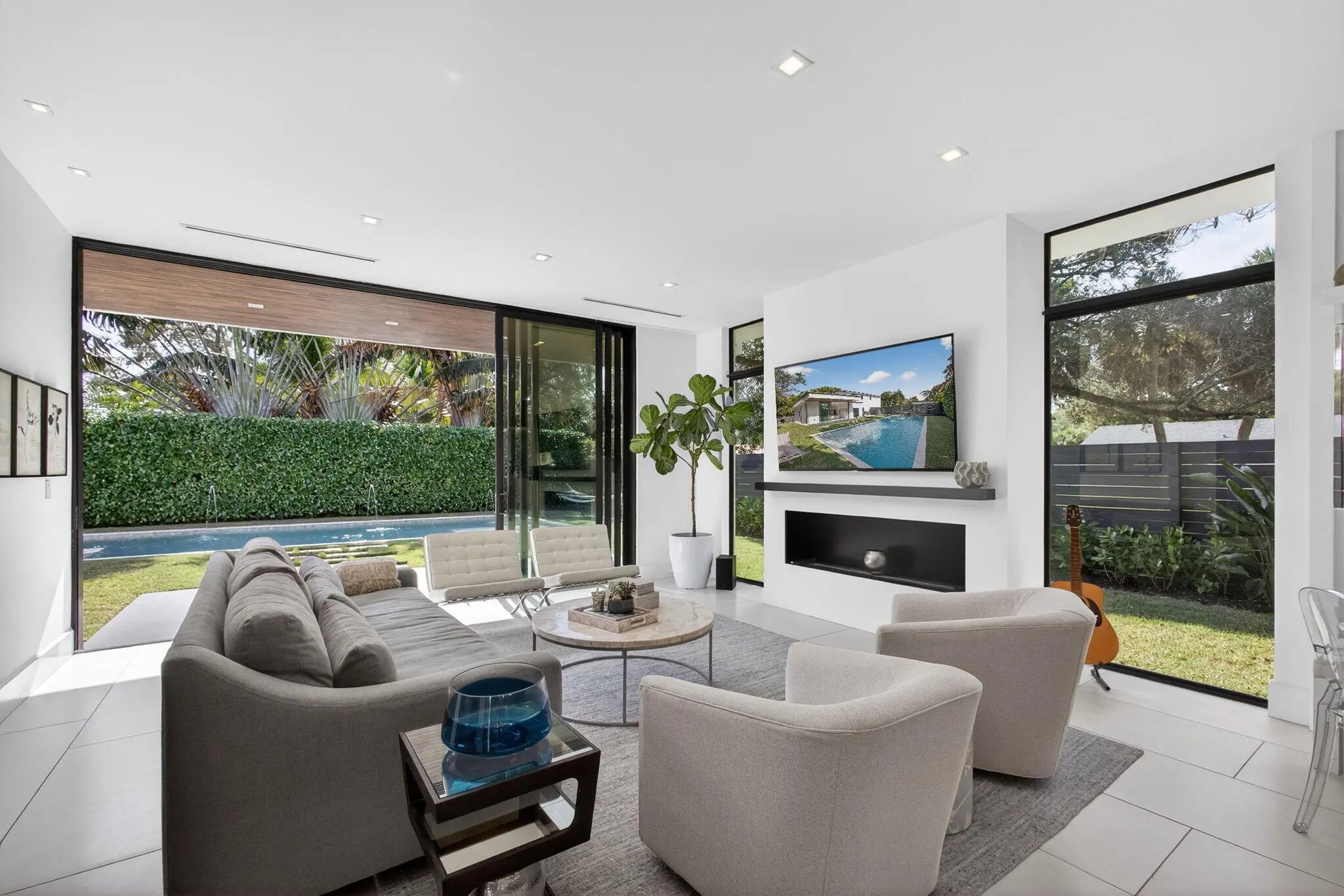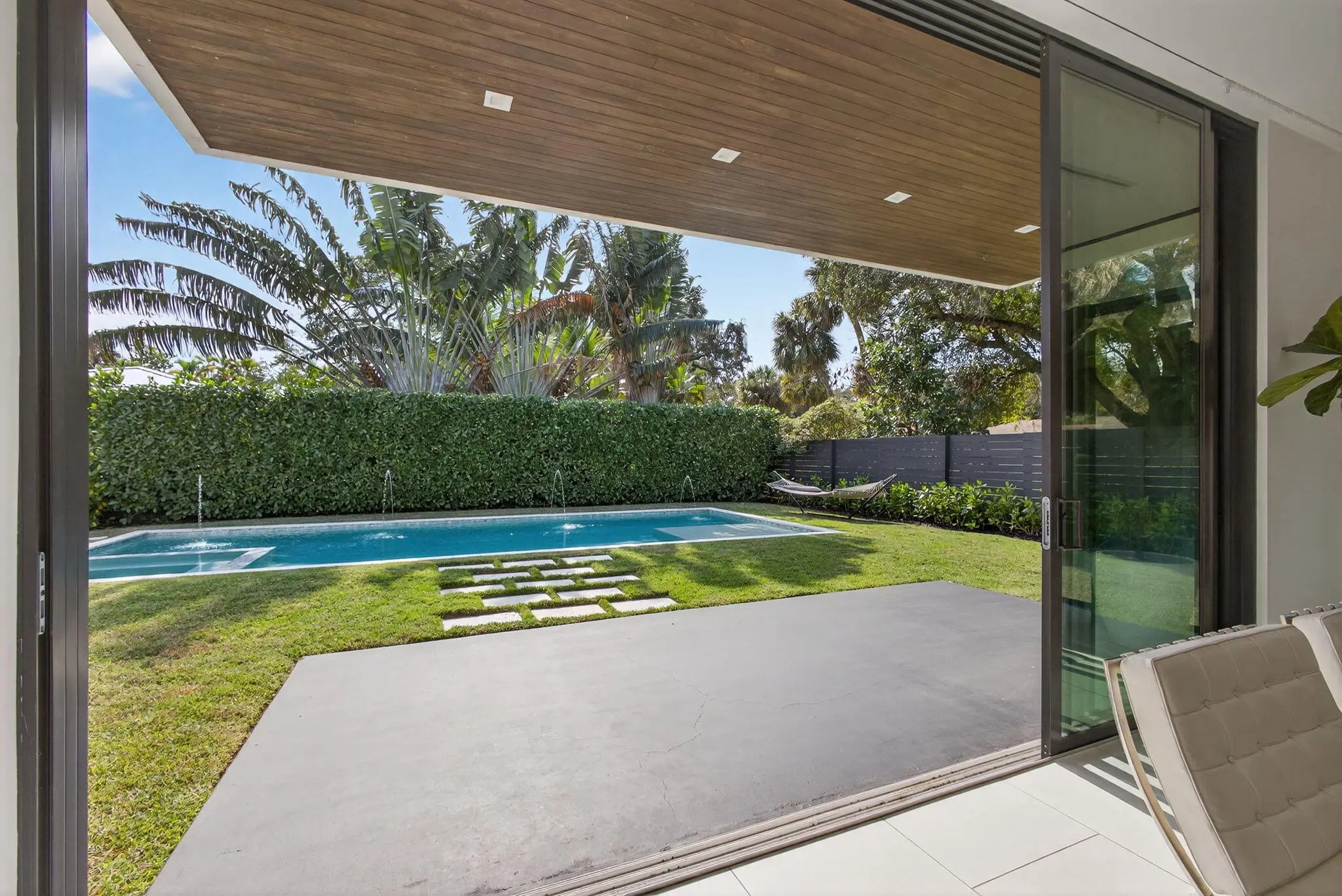 Welcome to Bella Luna--a striking contemporary estate that embodies architectural brilliance, privacy, and refined luxury in the heart of Palm Beach Gardens. Designed by the award-winning architectural and design team of Ballfort and Beres, this 4-bedroom, 3.5-bath residence with private office/den and upstairs entertainment loft is a true statement of modern sophistication.Completed in 2018 and positioned on a rare double lot on one of the most sought-after streets in the Northern Palm Beaches--with no HOA--this architectural masterpiece was crafted for the discerning buyer who values design integrity, elevated finishes, and seamless indoor-outdoor living.