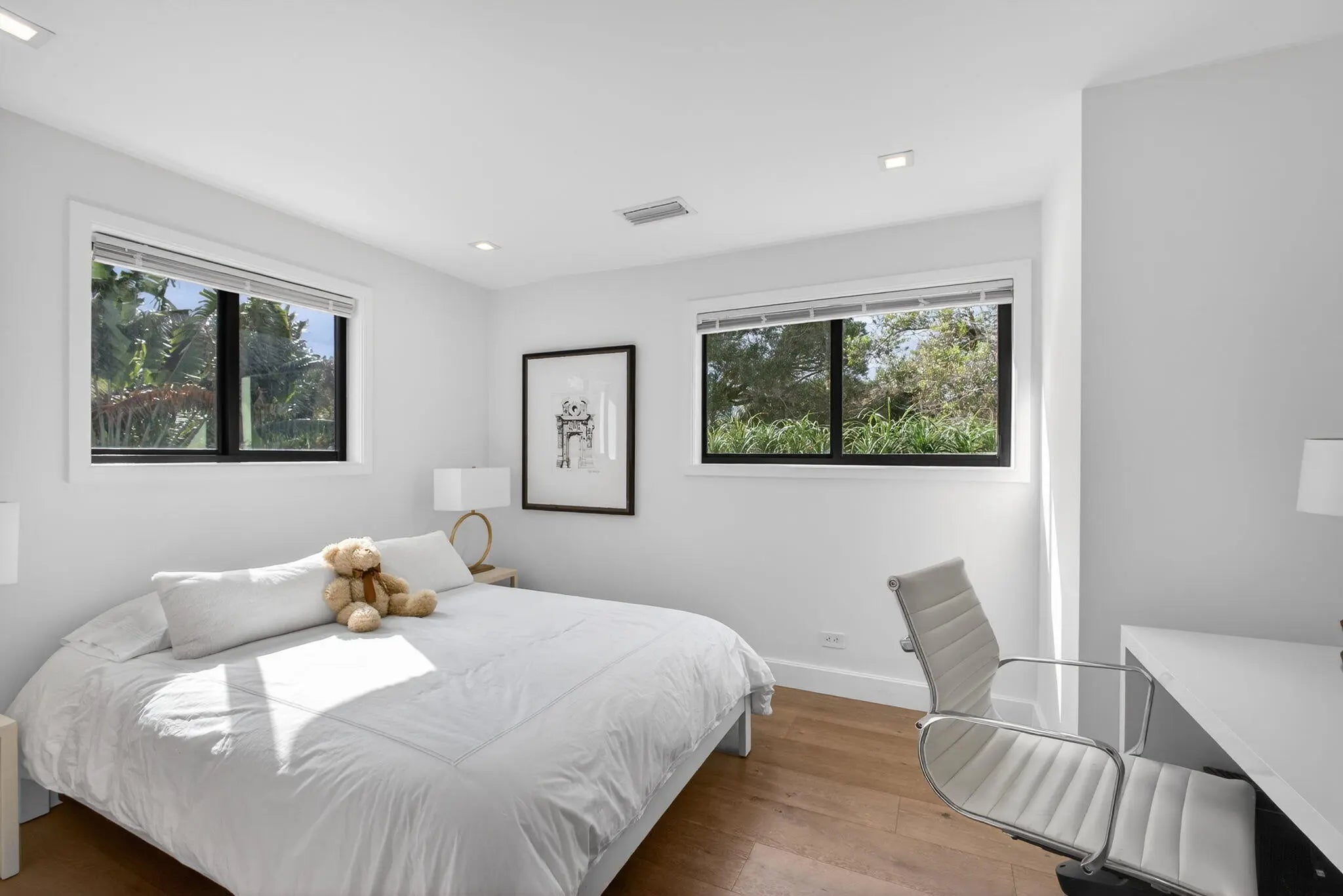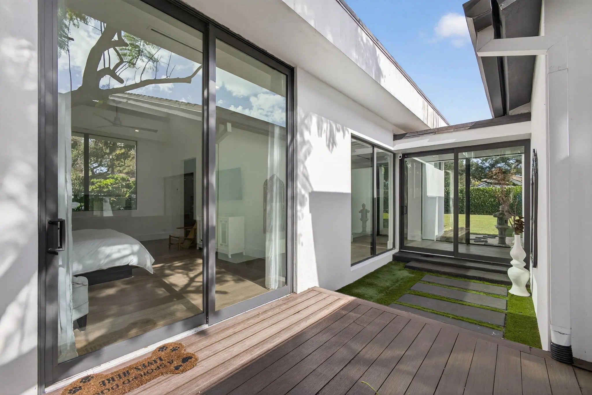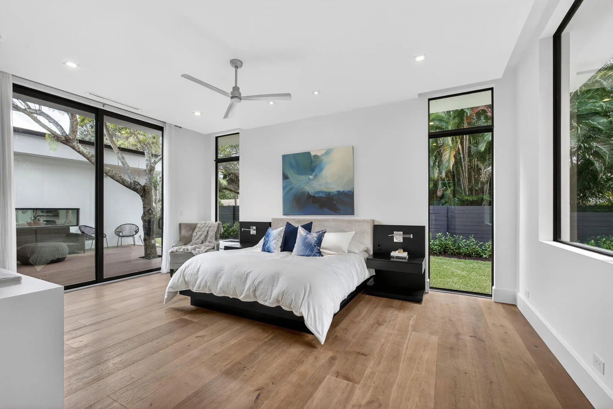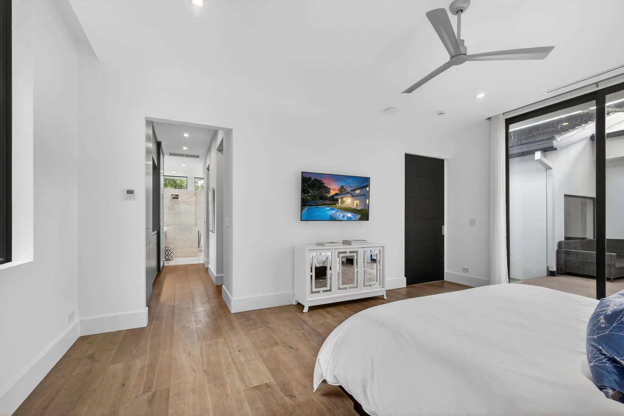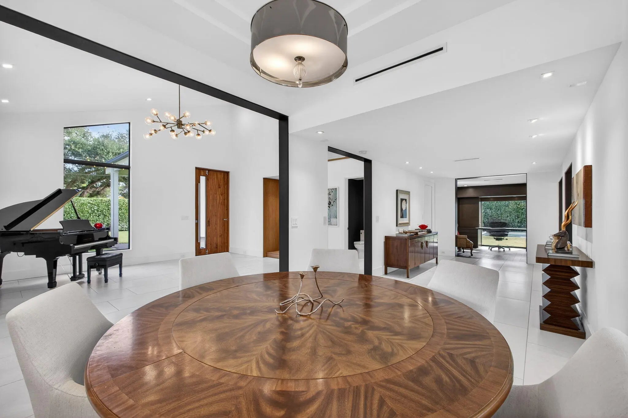 Welcome to Bella Luna--a striking contemporary estate that embodies architectural brilliance, privacy, and refined luxury in the heart of Palm Beach Gardens. Designed by the award-winning architectural and design team of Ballfort and Beres, this 4-bedroom, 3.5-bath residence with private office/den and upstairs entertainment loft is a true statement of modern sophistication.Completed in 2018 and positioned on a rare double lot on one of the most sought-after streets in the Northern Palm Beaches--with no HOA--this architectural masterpiece was crafted for the discerning buyer who values design integrity, elevated finishes, and seamless indoor-outdoor living.